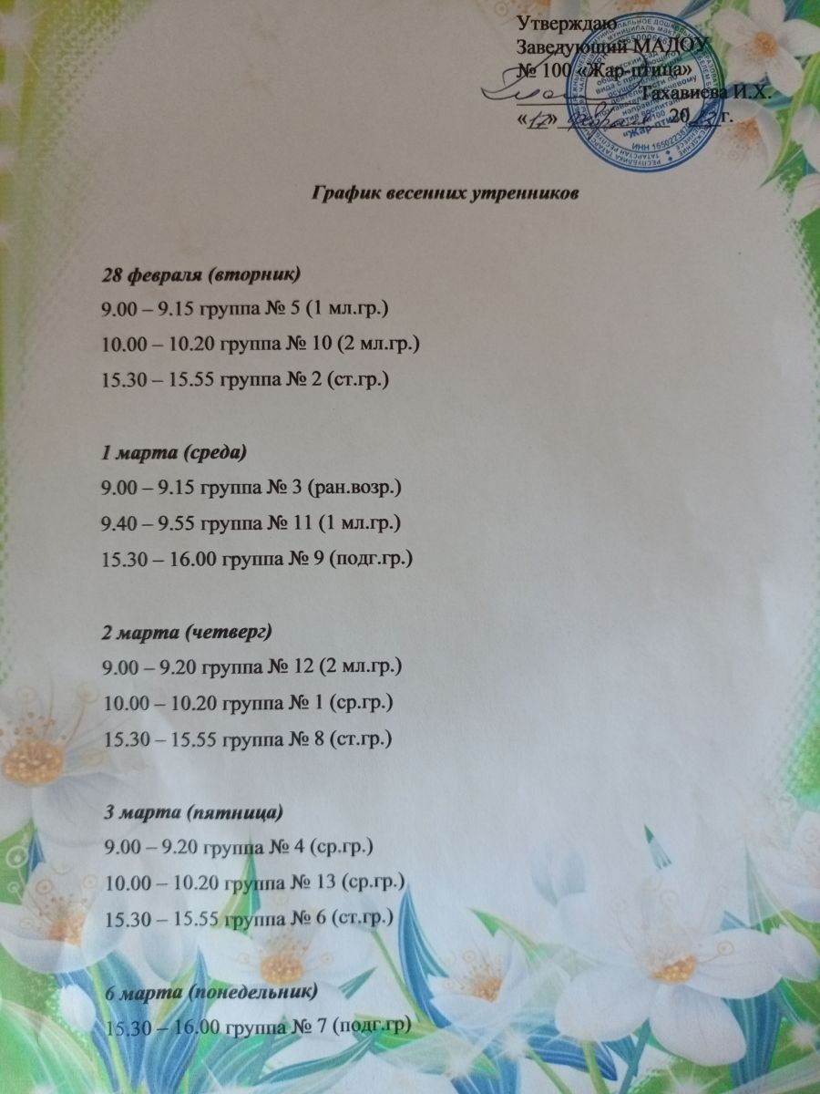 Расписание утренников на 8 Марта 27.02.2023