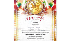 Поздравляем воспитанника подготовительной группы №6 Гатауллина Амира с победой в городским конкурсе юных чтецов "Родной язык - моё богатство!" среди детей дошкольных образовательных учреждений.