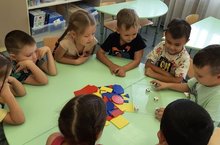 Очередное занятие прошло в STEM-кабинете для воспитанников старшей группе №5 с пособием «Свойства геометрических фигур».