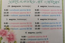 РАСПИСАНИЕ УТРЕННИКОВ