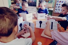Ребята решали примеры на закрепление состава числа от 1 до 10. Например, сколько игрушек для пальчикового театра понадобятся каждому ребёнку, или какая пара кубиков нужна для цветной дорожки мышатам, учитывая, сколько точек на кубиках, столько и шагов.