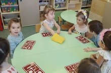 Дети превращали магический куб в волчок, и с интересом наблюдали за его вращением. В ходе игры закрепили форму, размер, цвет.