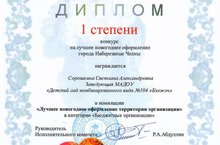 МАДОУ "Детский сад №104 "Бэлэкэч" участвовал в конкурсе на лучшее новогоднее оформление города Набережные Челны и занял 1 место в номинации "Лучшее новогоднее оформление территории организации"! Поздравляем!!!