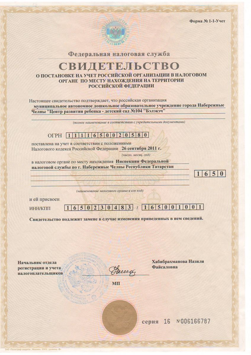Муниципальное автономное дошкольное образовательное учреждение города Набережные Челны «Центр развития ребенка – детский сад №104 «Бэлэкэч»/Яр Чаллы шәһәренең «Бэлэкэч»104 нче балалар бакчасы-баланы үстерү үзәге» муниципаль автономияле мәктәпкәчә белем бирү учреждениесе