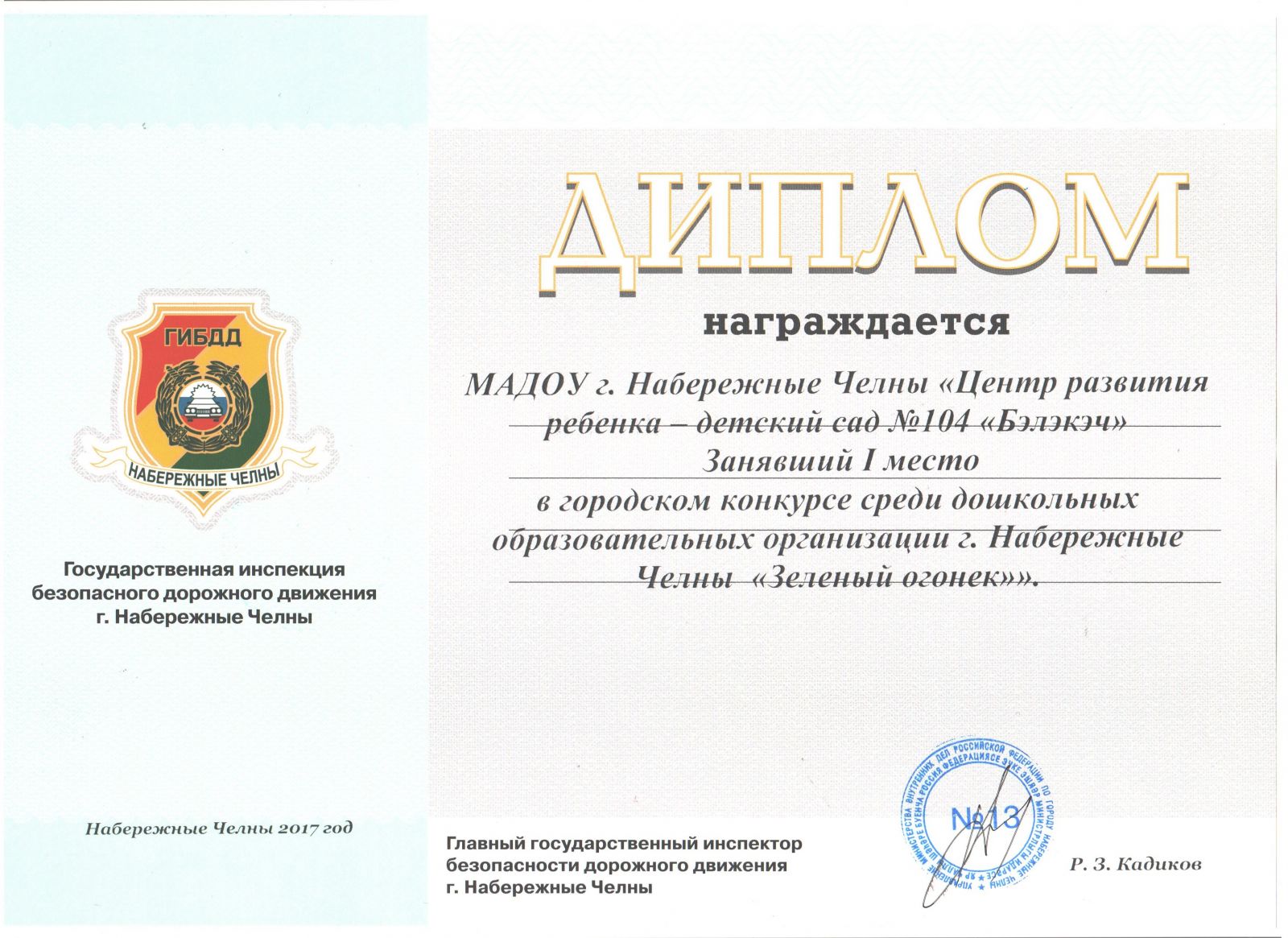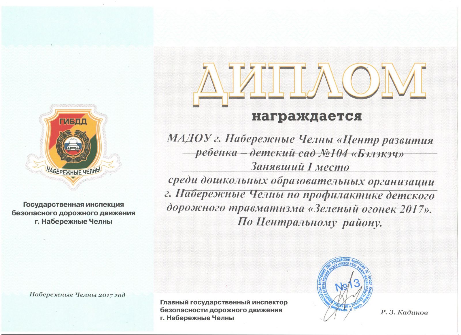 Коллектив МАДОУ «Детский сад №104 «Бэлэкэч» представил свой Проект по профилактике детского дорожно-транспортного травматизма и завоевал достойное 1 место.