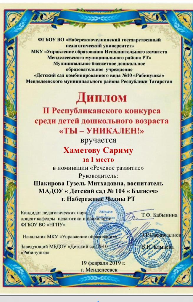| Короткое название: | МАДОУ «Детский сад №104 «Бэлэкэч»/«Бэлэкэч» 104 нче балалар бакчасы МАМББУ |