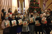 Администрация комсомольского района города Набережные Челны наградила, участвующих в открытии елки детей, сладкими подарками.