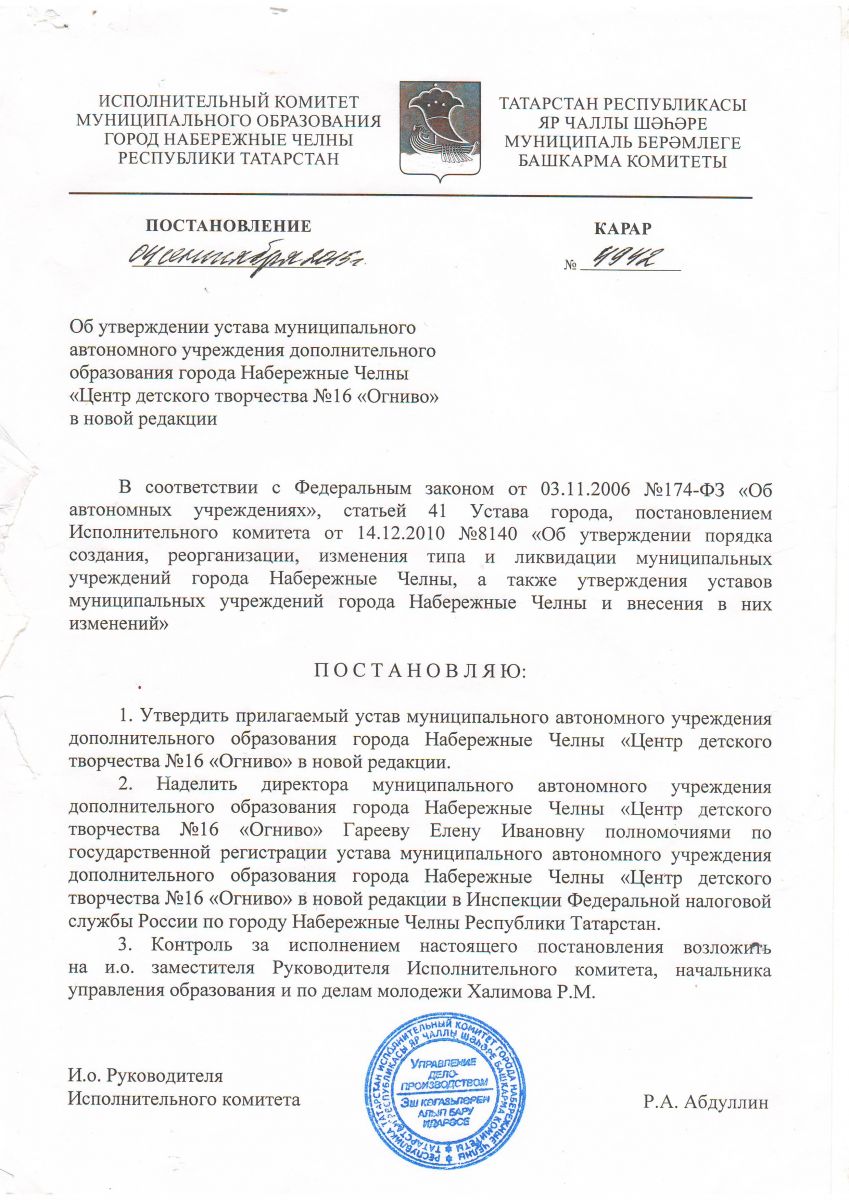 Муниципальное автономное учреждение дополнительного образования города Набережные Челны «Центр детского творчества №16 «Огниво»/ Яр Чаллы шәһәренең "16нчы "Чакматаш" балалар иҗат үзәге" муниципаль автономия өстәмә белем бирү учреждениесе