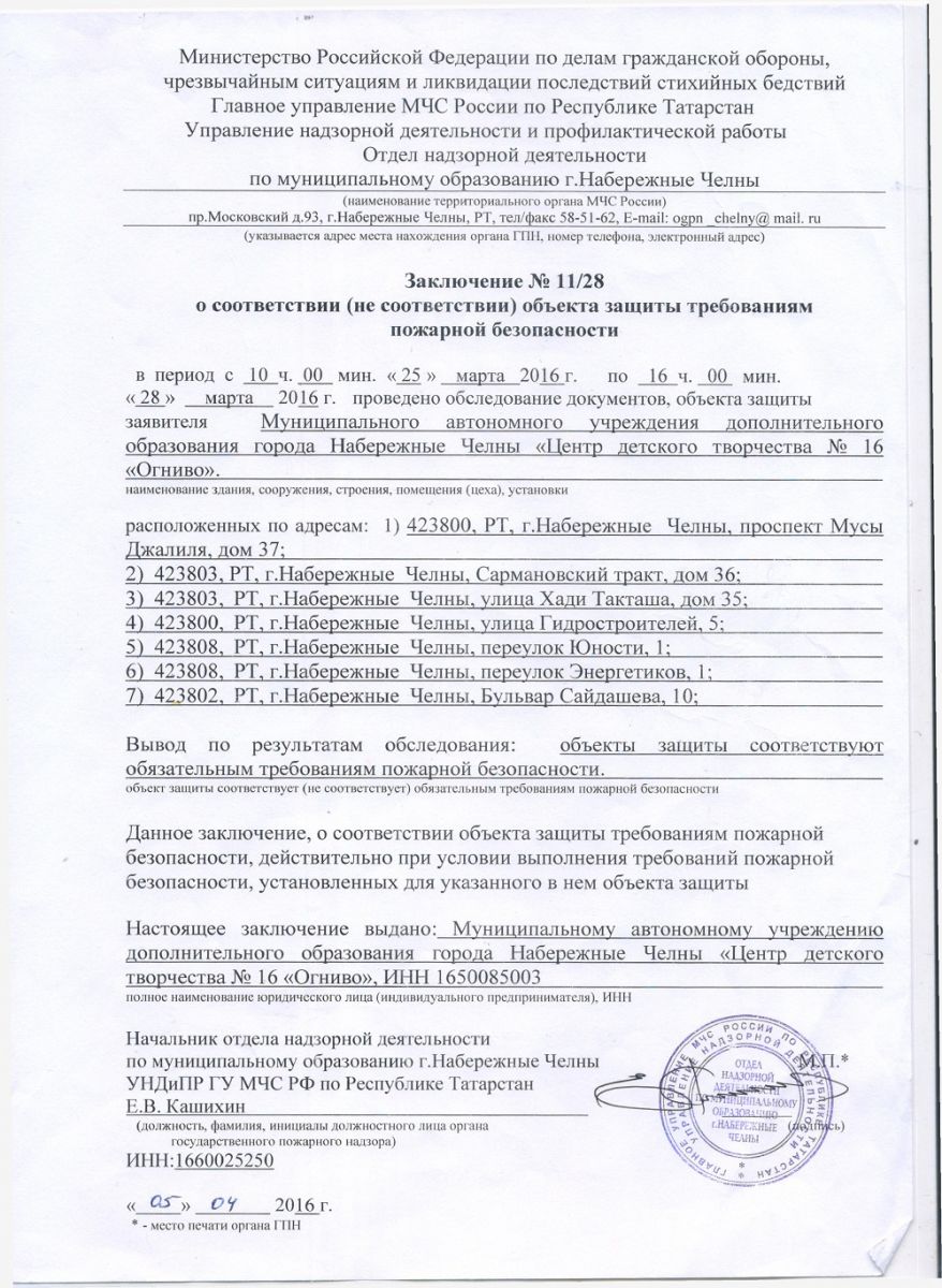 Заключение пожнадзора на школы №40,45,12,64.