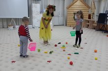 В конце октября прошел праздник - осенние развлечения для детей всех возрастов. В этом году Осень порадовала Детей и песнями, и играми, и танцами. В конце праздника Осень угостила ребят яблоками.