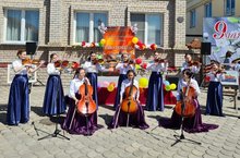 На улице Центральная пос. ГЭС праздничный Гала - концерт Открытого городского фестиваля «Эхо Победы». В нем принял участие Ансамбль струнно-смычковых инструментов "Элегия" (Преподаватель Николаева М.В., концертмейстер Ханнанова В.Б., иллюстратор Абраменко С.А.)