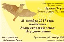 Идет прием заявок на V Открытый Всероссийский вокальный фестиваль-конкурс «Чулман тургае - Жаворонок Закамья»