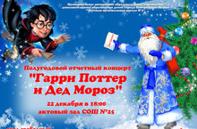 22 декабря в 18:00 состоится полугодовой отчетный концерт "Гарри Поттер и Дед Мороз". Приглашаем всех родителей.