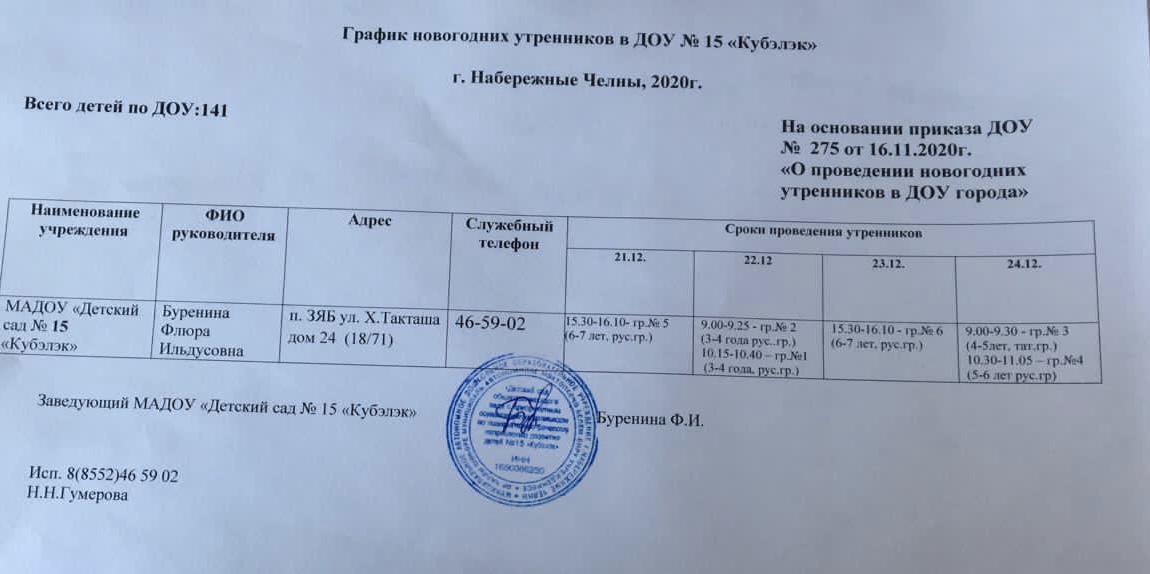 Уважаемые родители с графиком новогодних утренников можете ознакомится здесь!Напоминаем, что все утренники и праздники в ДОУ проходят без присутствия родителей (законных представителей) 07.12.2020