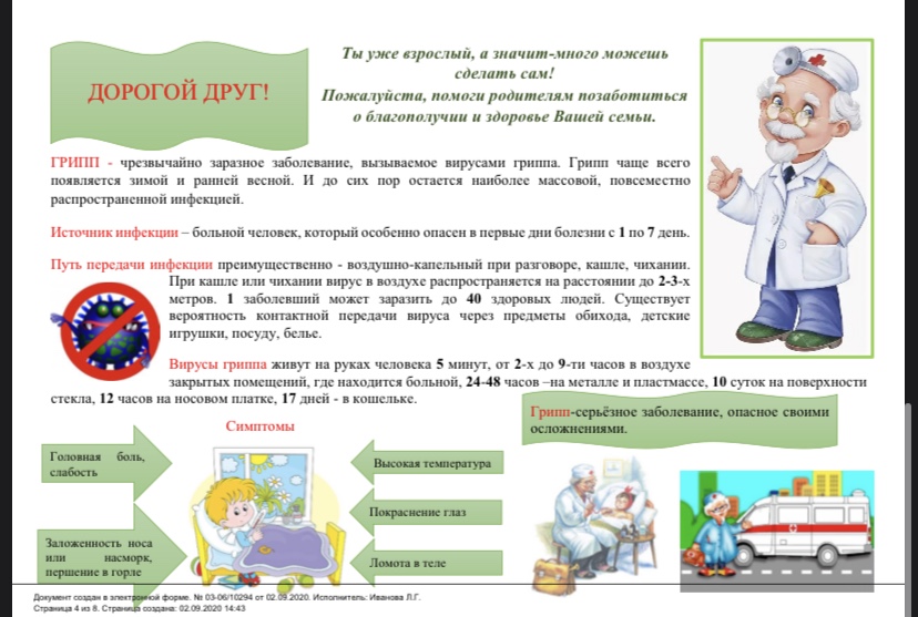 Внимание! Родители, ГРИПП! 07.09.2020