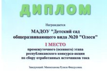 Поздравляем коллектив детского сада и родителей с победой в промежуточном этапе республиканского конкурса-акции по сбору отработанных источников тока. Благодарим всех за помощь и отзывчивость!