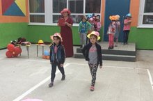 Педагоги провели замечательное развлечение на улице. Создали настоящий веселый праздник. Были игры, песни, танцы, приходили сказочные герои, в конце праздника дети рисовали на асфальте цветными мелками рисунки и пускали мыльные пузыри.