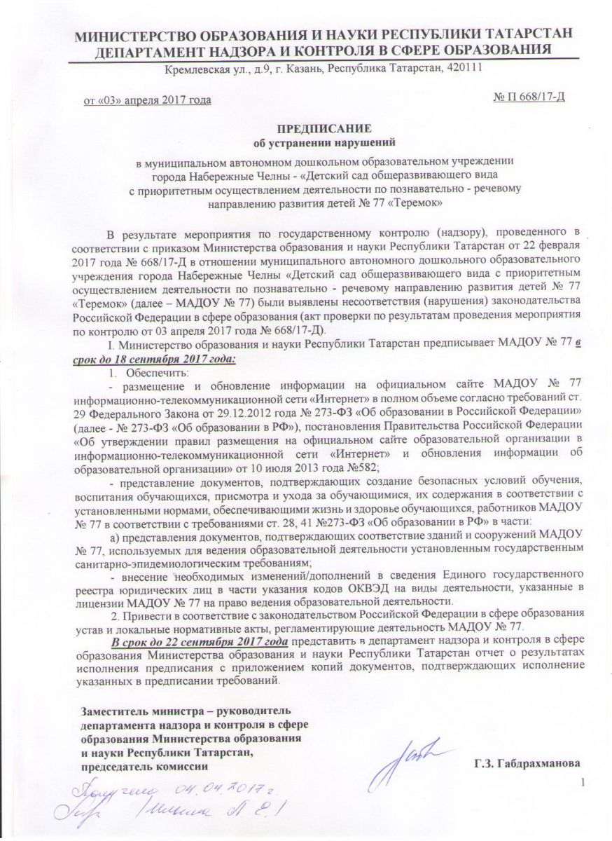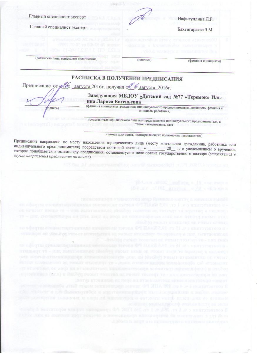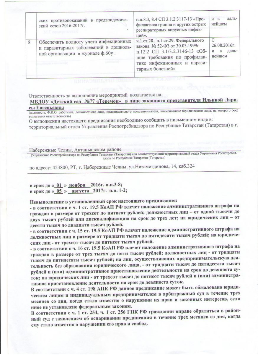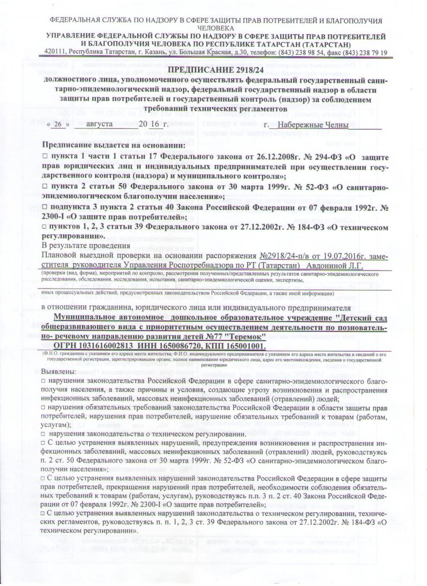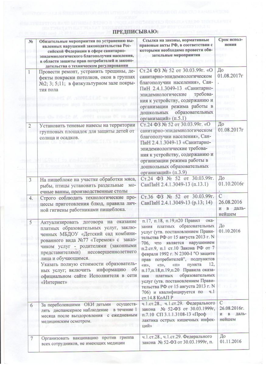 Предписание Роспотребнадзора за 2016 год стр. 1 стр.2 , стр.3, стр.4 ,стр. 5