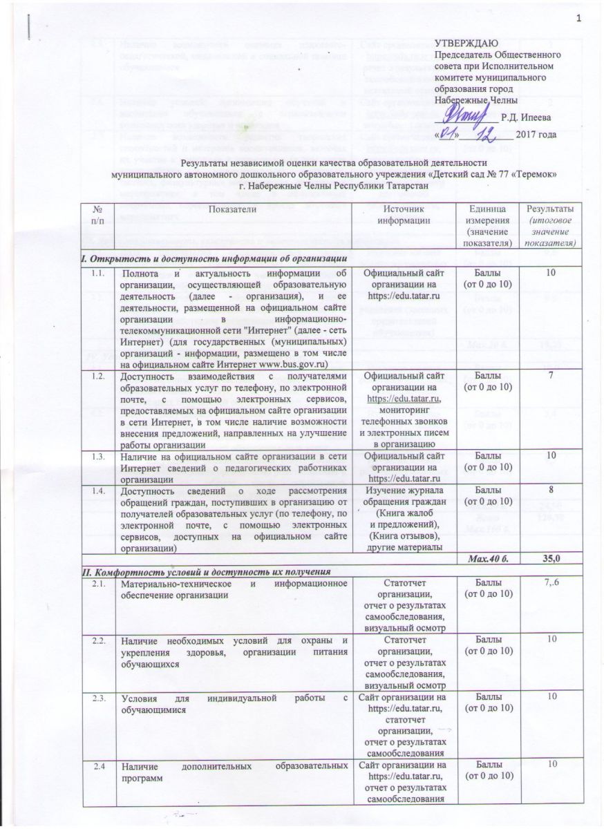 Результаты независимой оценки качества образовательной деятельности МАДОУ № 77 " Теремок" 1 стр., 2 стр.