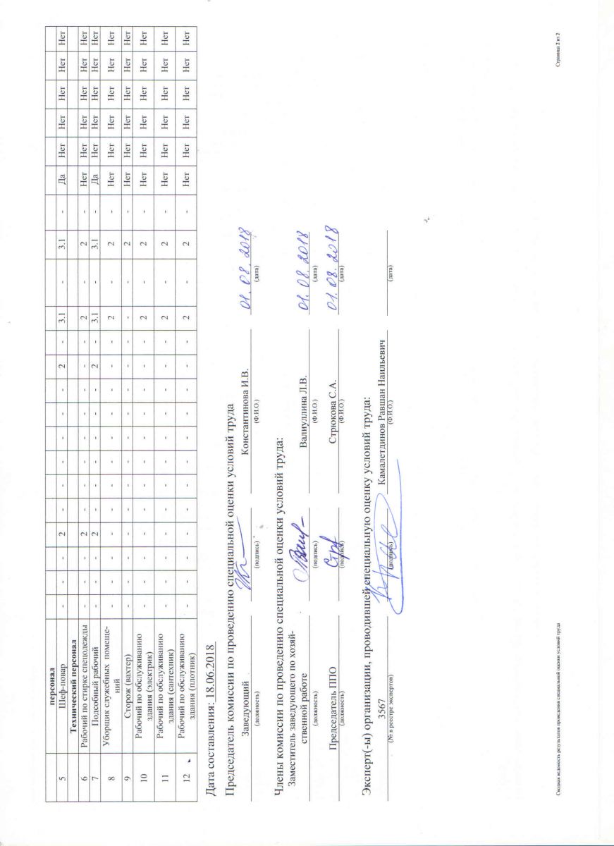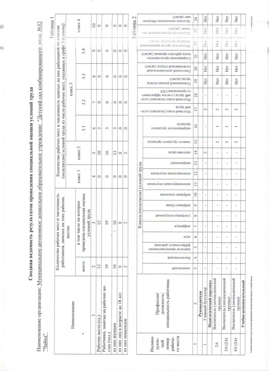 Сводная ведомость результатов проведения специальной оценки условий труда(1),(2)