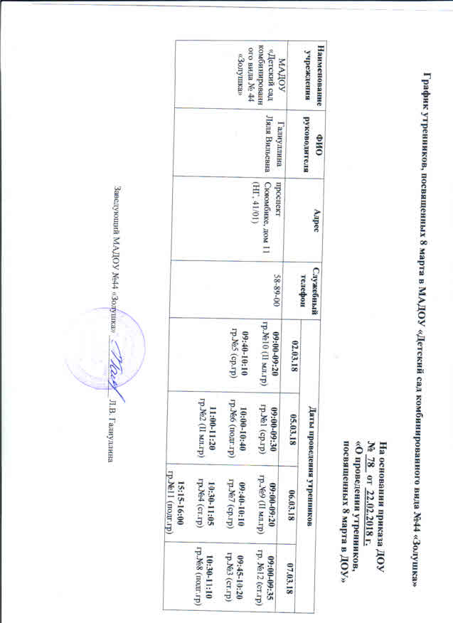 Уважаемые родители! по ссылке вы можете ознакомиться с графиком проведения утренников, посвященных 8 марта график