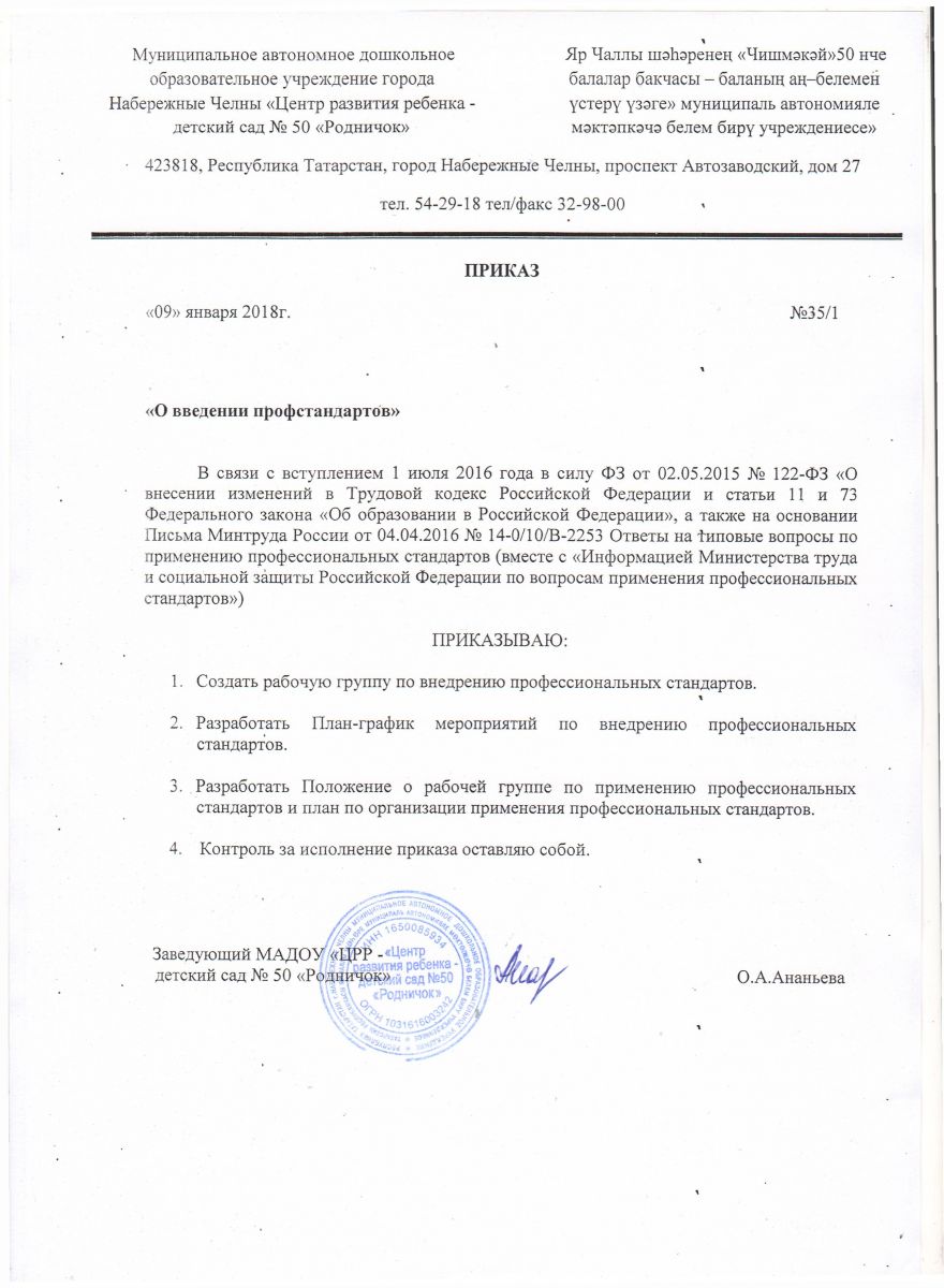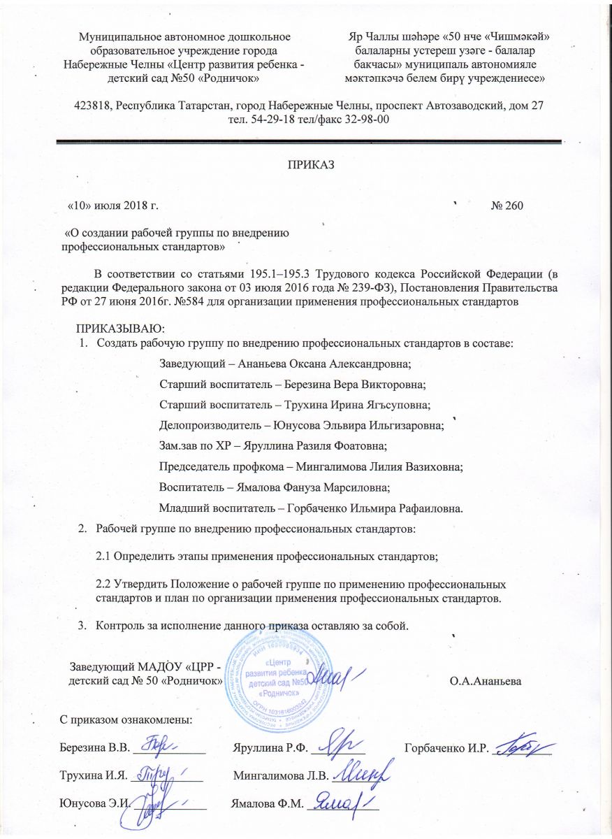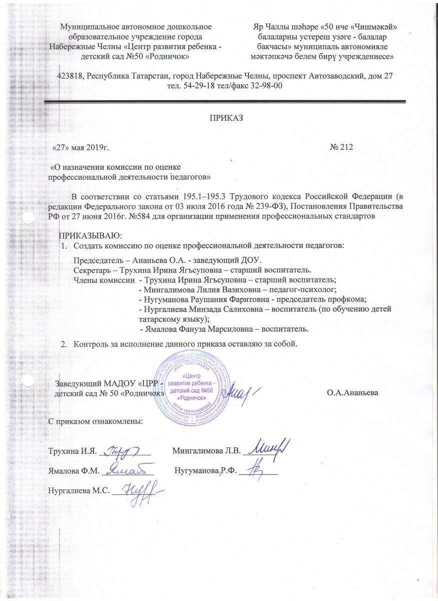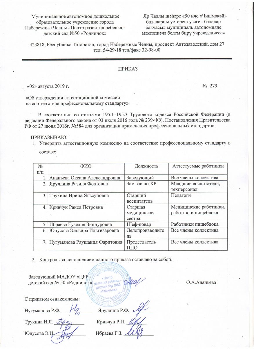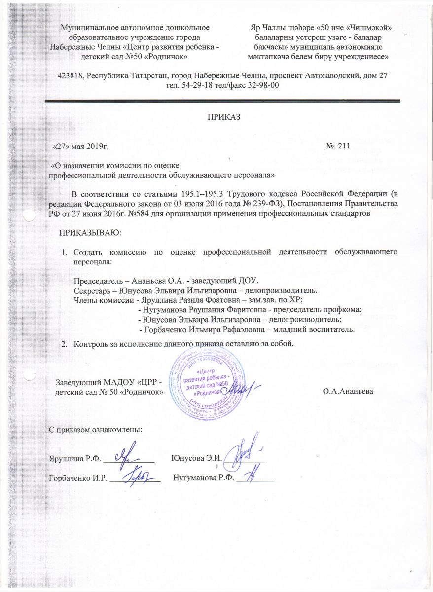 Приказ об утверждении аттестационной комиссии на соответсвтие профессиональному стандарту