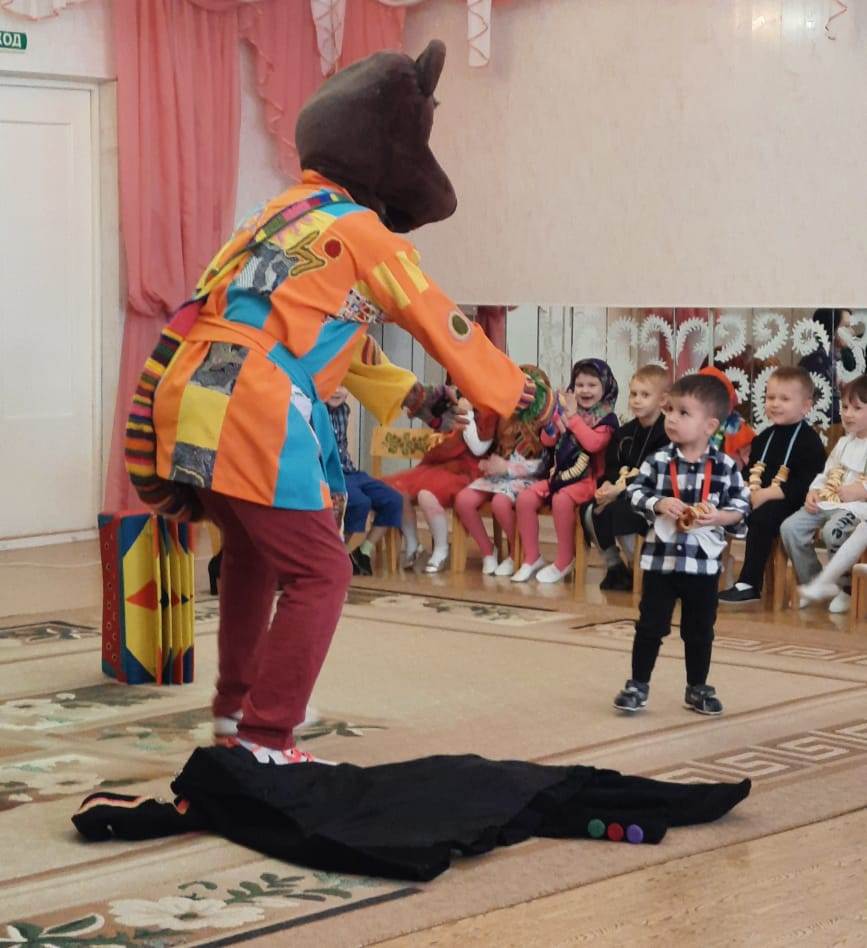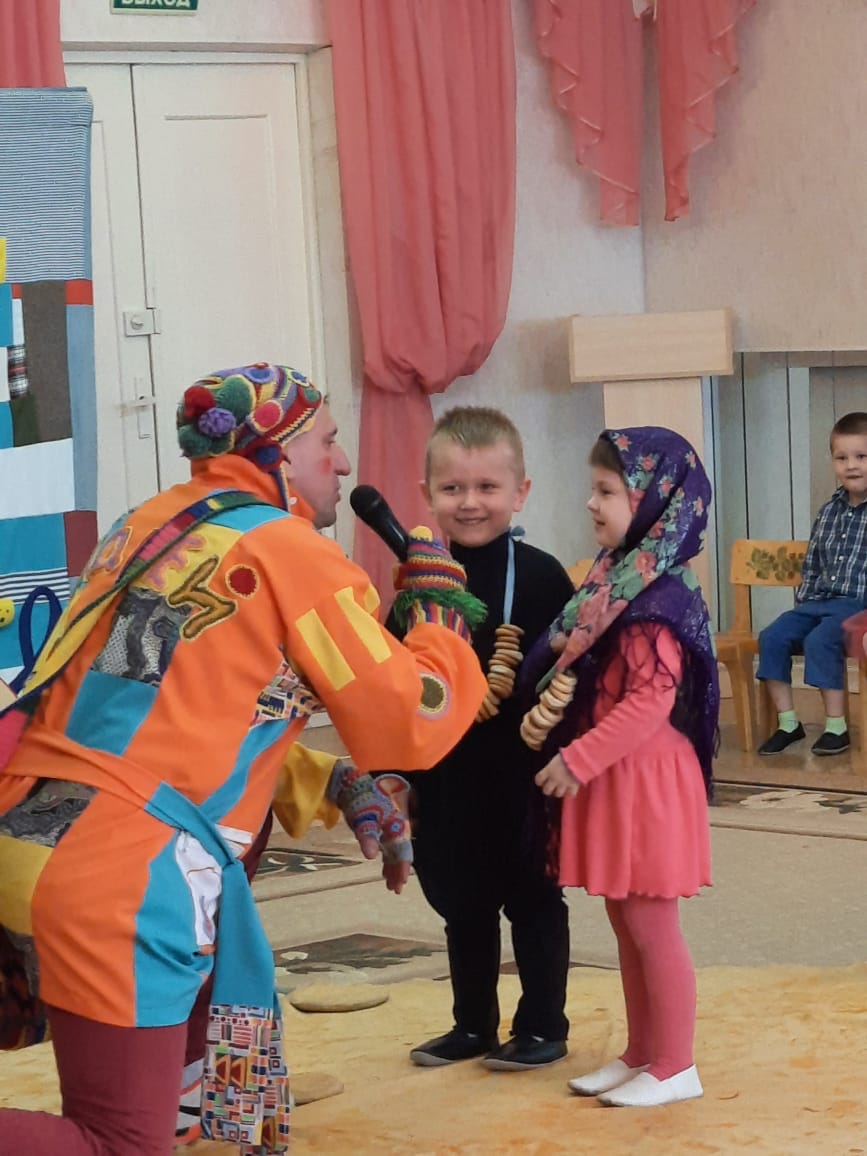 И наши дети стали участниками масленичных гуляний. Любимые персонажи детей, скоморохи, устроили веселые масленичные забавы. Дети соревновались в смелости и находчивости, силе и ловкости, смеялись над шутками скоморохов, кружились в хороводе, завлекая в весёлую пляску весь детский сад.