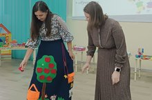 10.10.2023 на базе ДОУ №54 прошел муниципальный семинар для воспитателей групп раннего возраста, младших групп «Адаптация. Психологические особенности детей раннего дошкольного возраста». Выступление на семинаре с показом мастер-класса «Адаптационная юбка», педагоги Хузина О.П., Пономарёва Т.В. показали, как применить на практике сшитую своими руками дидактическое пособие.