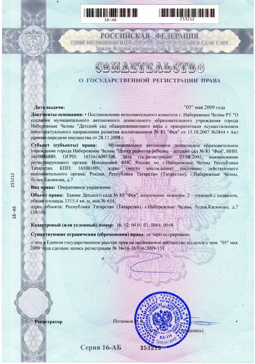 | Короткое название: | МАДОУ "Центр развития ребенка - детский сад № 83 "Фея"/"Тылсымчы кыз" 83 нче балалар бакчасы - баланы үстерү үзәге» МАМББУ |