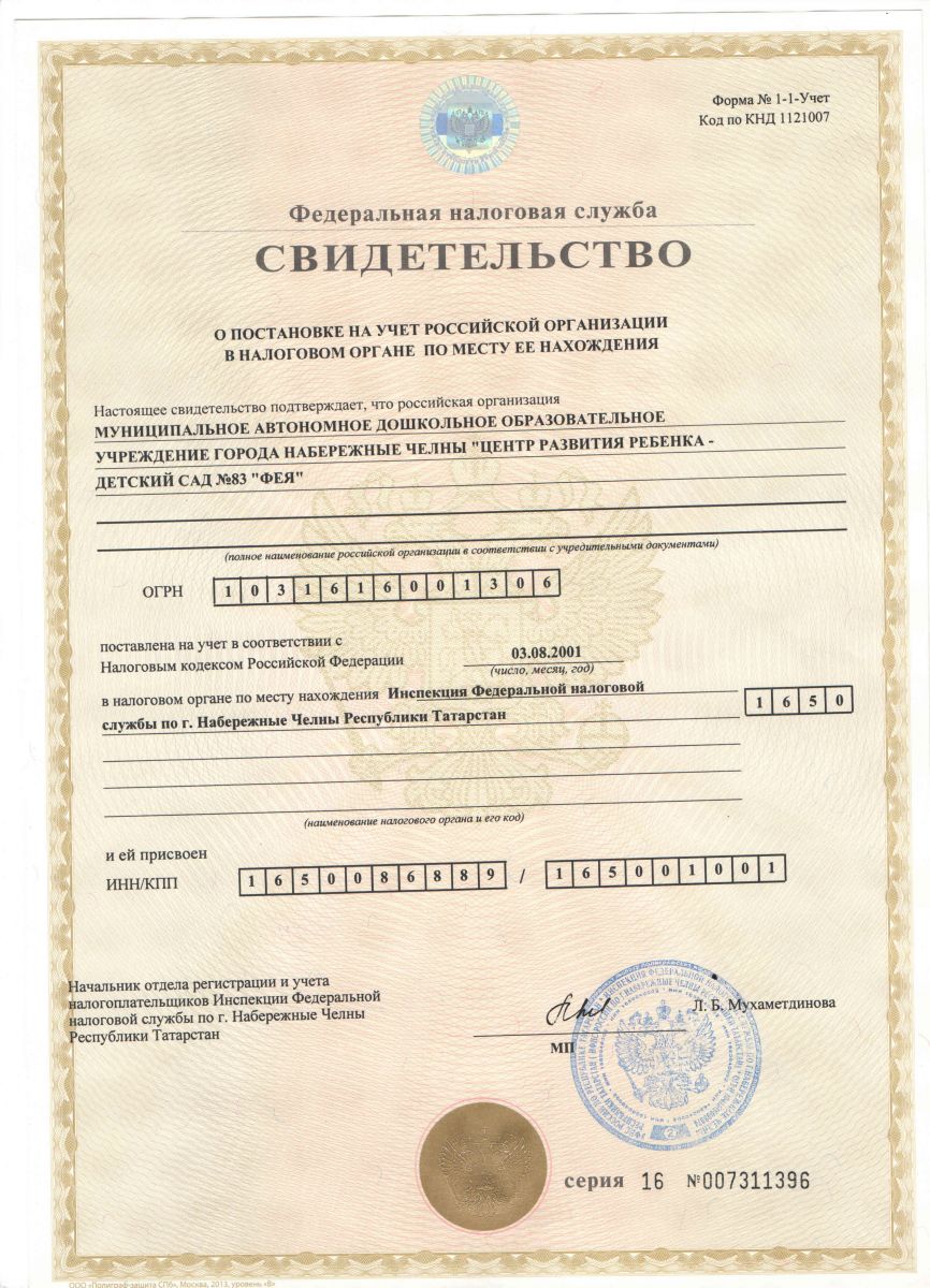 Свидетельство о внесении записи в единый государственный реестр юридических лиц
