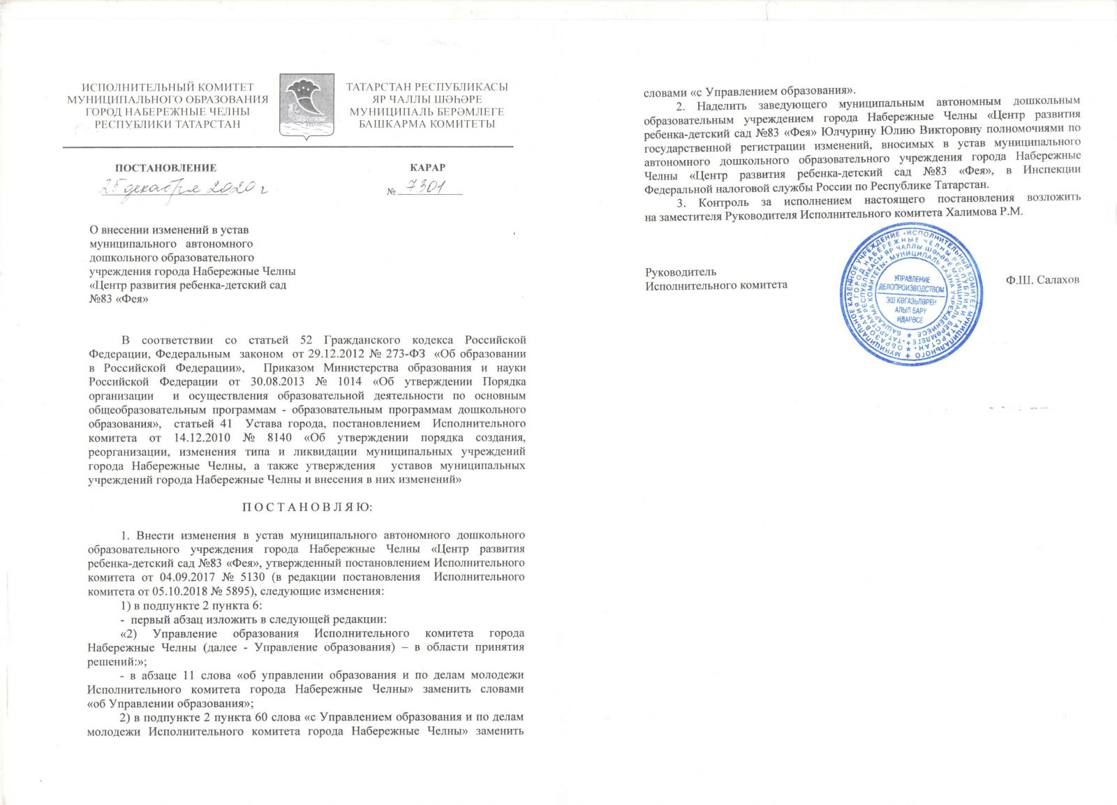 Муниципальное автономное дошкольное образовательное учреждение города Набережные Челны «Центр развития ребенка - детский сад №83 «Фея»/Яр Чаллы шәһәренең «Тылсымчы кыз» 83 нче балалар бакчасы - баланы үстерү үзәге» муниципаль автономияле мәктәпкәчә белем бирү учреждениесе»