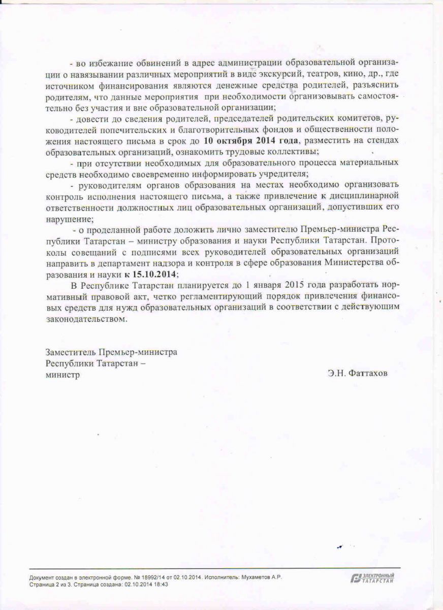 Письмо "О рекомендациях по привлечению внебюджетных средств, организации выездов на культурно-массовые мероприятия, организации туристических поездок  в образовательных учреждениях"