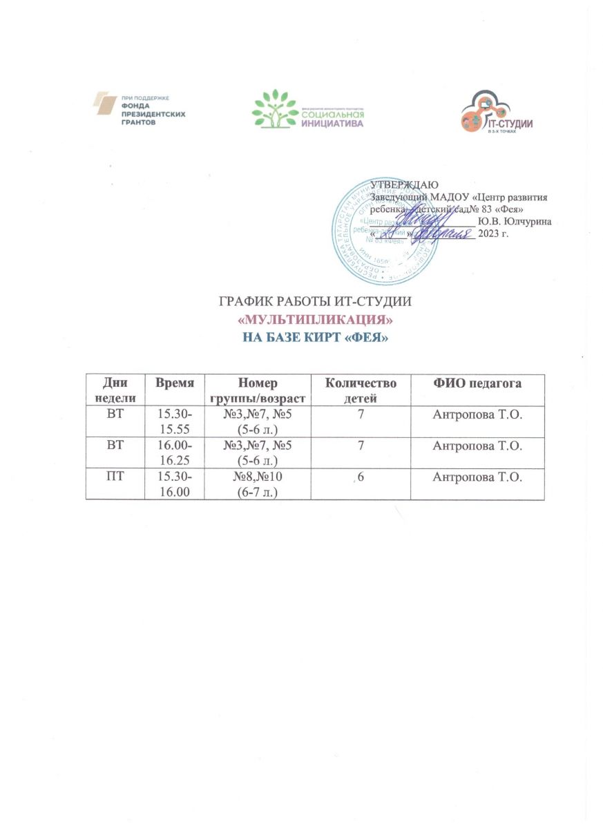 Прием детей в студии осуществляется на основании заявления от родителей (законных представителей):