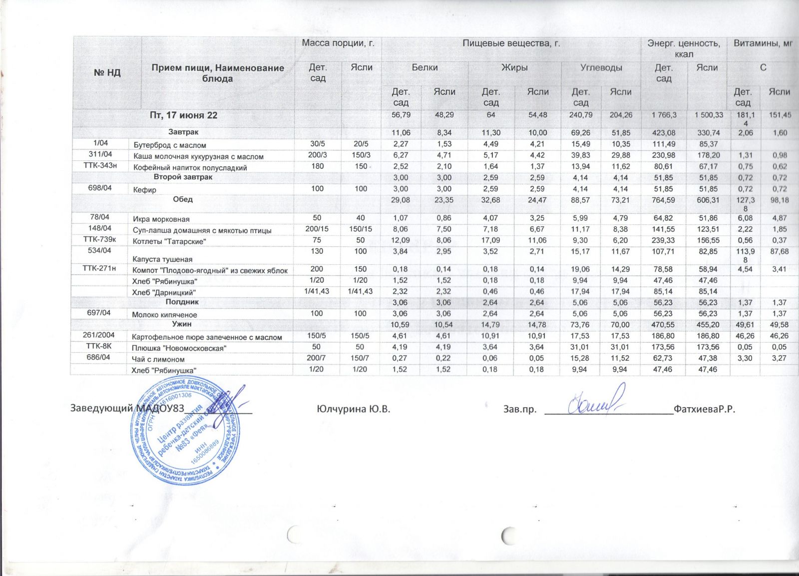 Меню на 17.06.2022