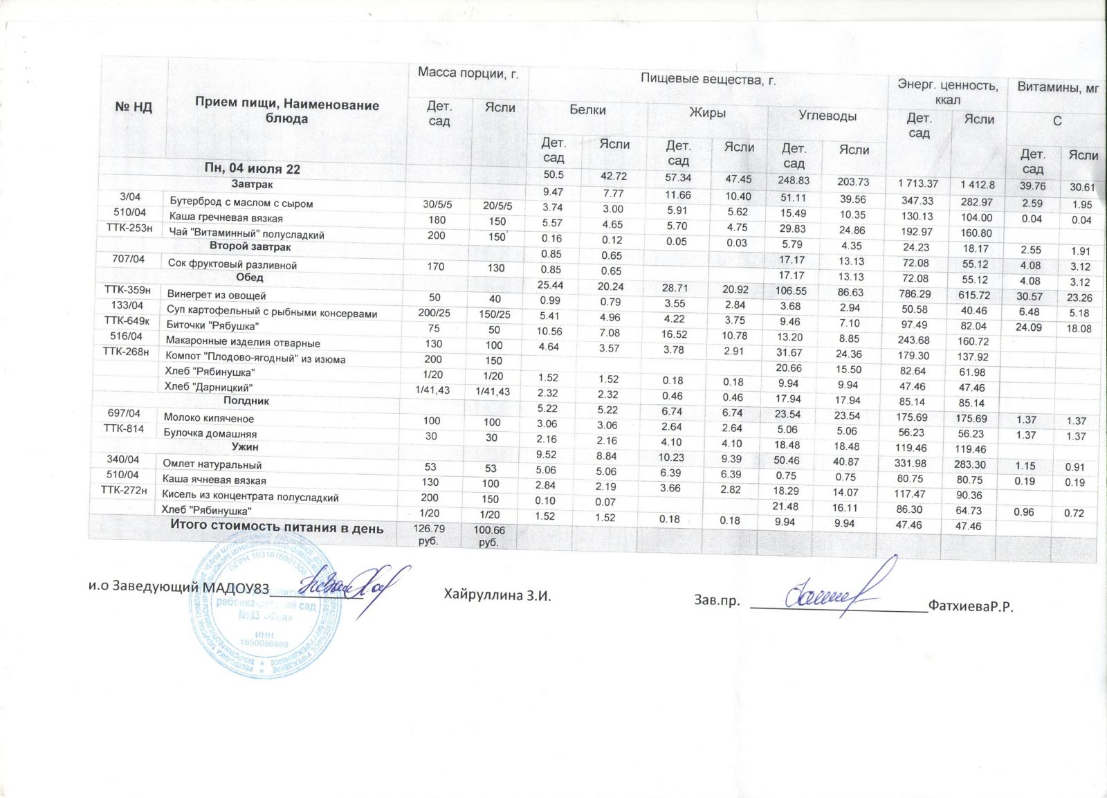 Меню на 04 июля 2022