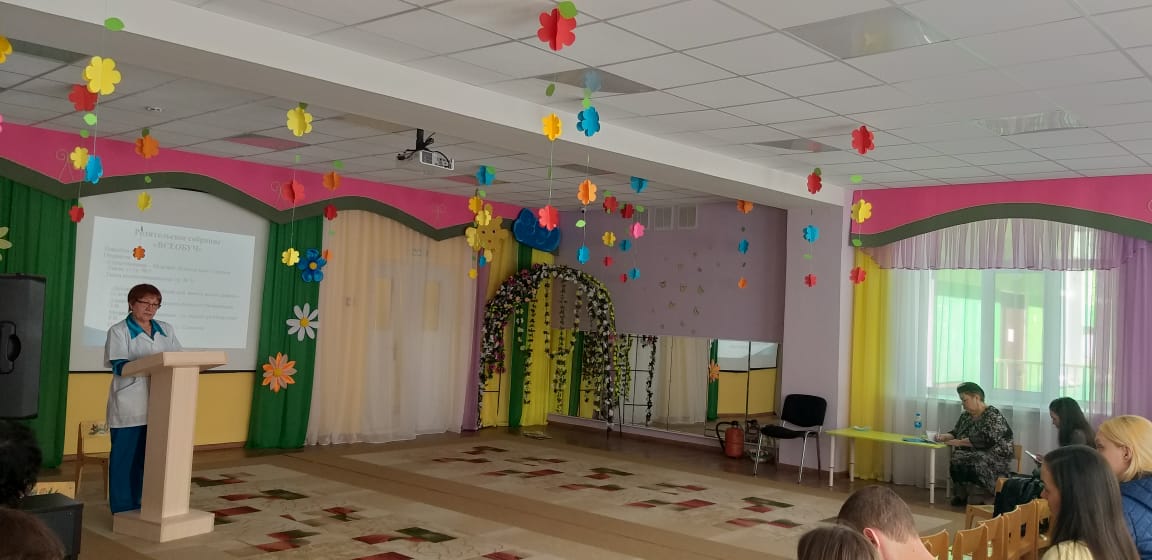 Педагог-психолог нашего детского сада Зиля Флюровна Овчинникова, рассказала об особенностях адаптации детей 2-3 лет. Старший воспитатель Алия Салаватовна Валеева, познакомила родителей с воспитателями, к которым пойдут дети. Рассказала про ООП, режим дня, какие мероприятия проходят в детском саду. Рафиса Валиахметовна, старшая медсестра, рассказала об оздоровительной работе ДОУ о санитарных нормах и правилах.