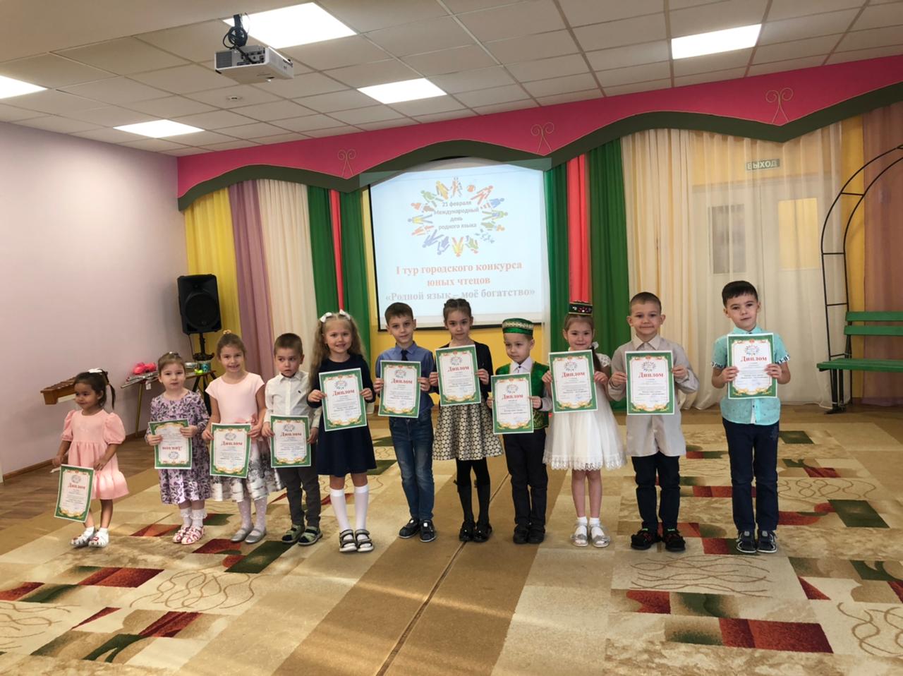 Сегодня в нашем детском саду прошел 1 тур отборочного этапа на городской конкурс юных чтецов "Родной язык-мое богатство" Воспитанники подготовили стихотворения татарских и русских поэтов. Победителем конкурса стал воспитанник группы № 9-Сахапов Раиль, он будет представлять наш детский сад на муниципальном уровне! Дипломом 1 степени наградили - Гиниятуллину Илину, дипломом 2 степени-Дяжур Данила, дипломом 3 степени- Аликбаева Салима. Поздравляем всех участников конкурса, желаем дальнейших побед!!!