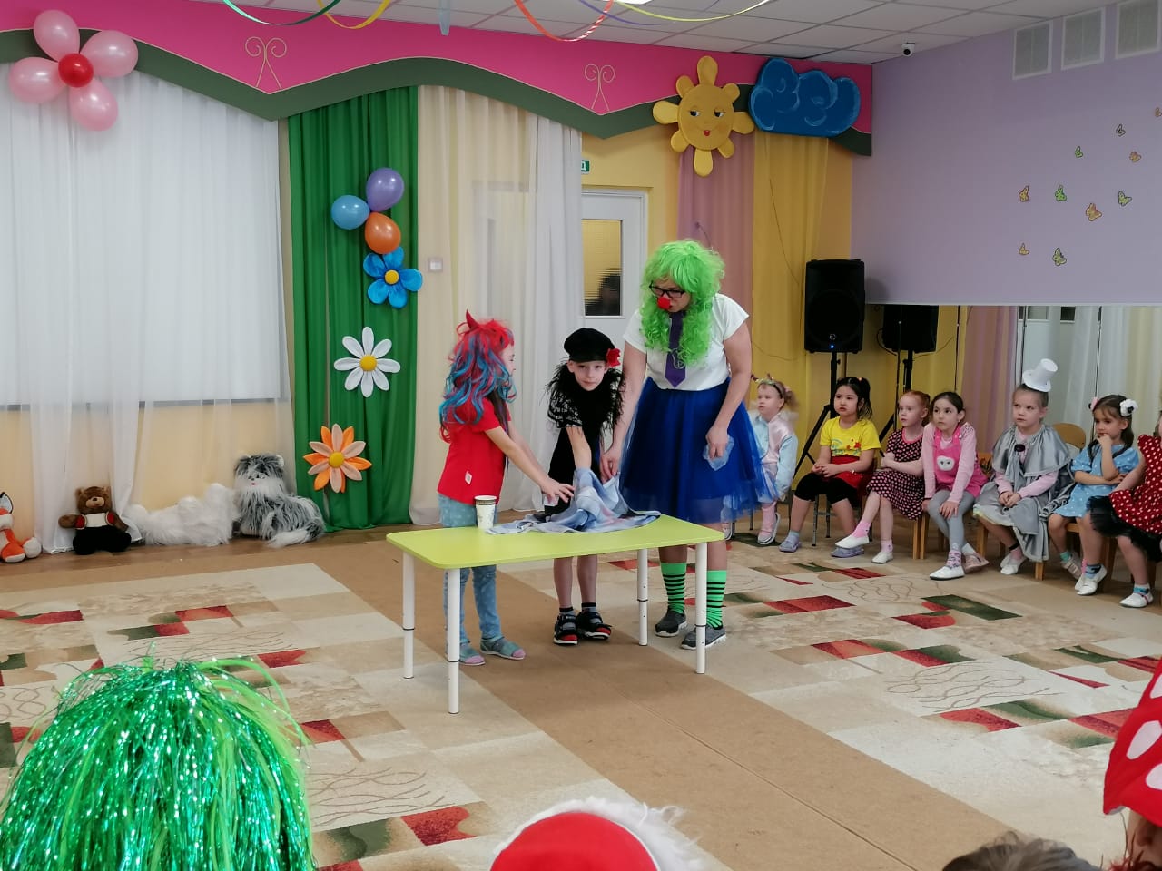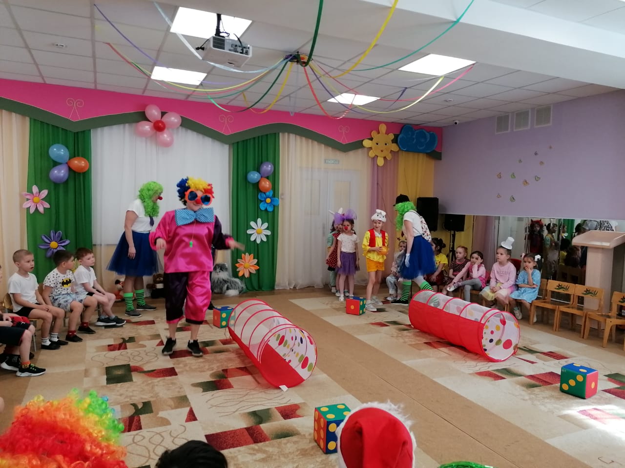 Сегодня в детском саду прошел праздник "День смеха". Вместе с веселыми клоунами дети отправились на ковре самолете в цирк. В цирке их ждали веселые игры, песни,танцы, фокусы и сладкие угощения. Улыбки,шутки и радость были сегодня в саду.