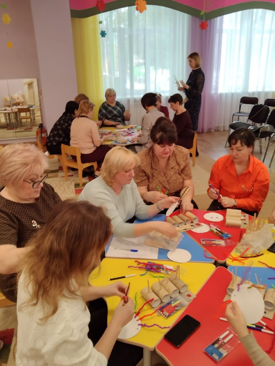 "Кладовая мастер-классов по использованию современных игровых технологий в работе с детьми раннего возраста" под таким названием 23 марта прошел в нашем детском саду семинар-практикум МО педагогов-психологов ДОУ. Психологи поделились материалом из опыта работы, обучили созданию дидактических игр из подручного материала, нестандартному рисованию, использованию методов пластилинотерапии и другие. Просмотрели видеозанятие по групповой адаптации детей раннего возраста с применением музыкально-двигательных, кинезиологических упражнений, методов пальчиковой, мимической, артикуляционной гимнастики.