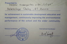 Наш сад получил сертификат , удостоверяющий о том, что мы участники международной программы "Эко-Школы/Зеленый флаг" !