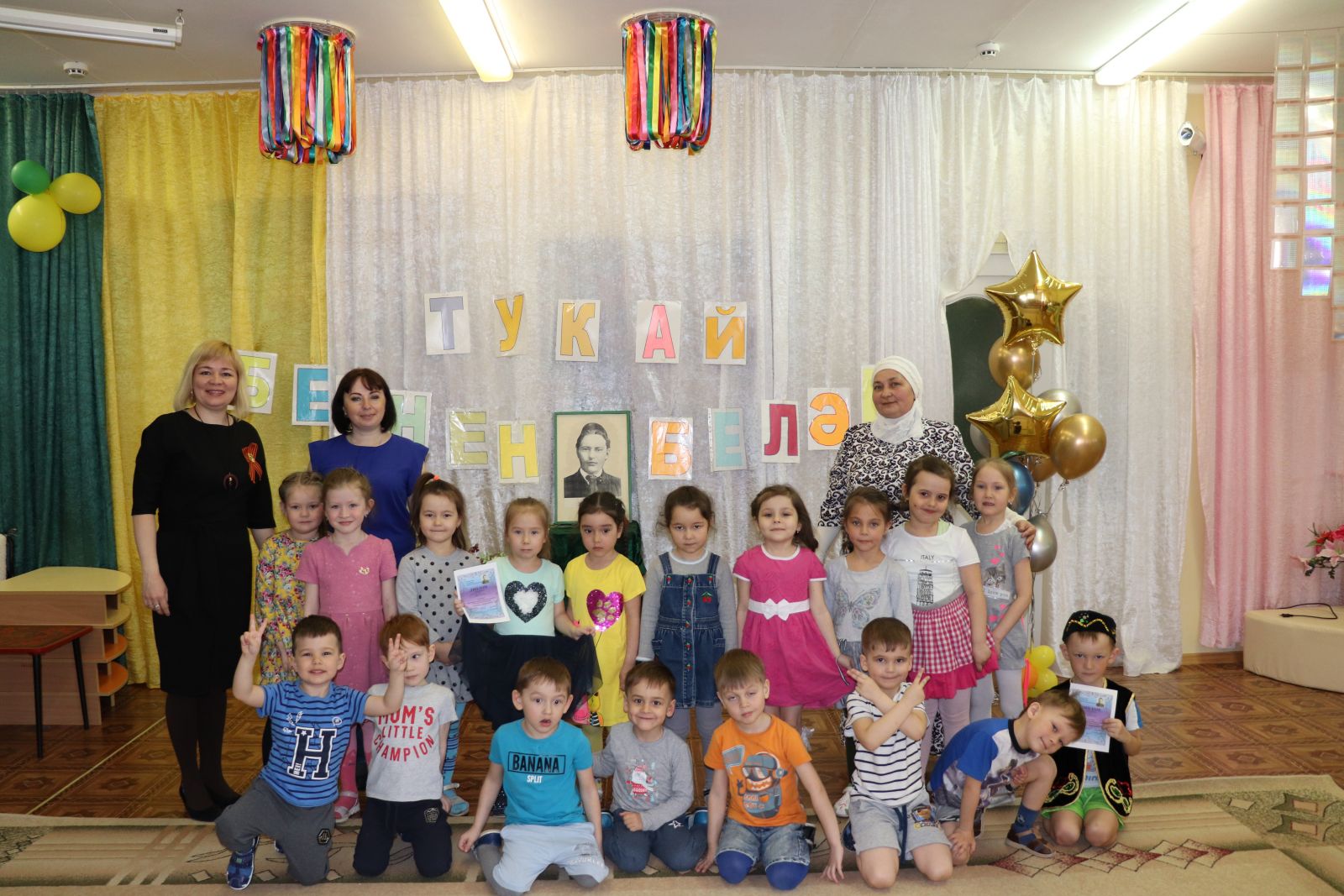 Опубликовано: 26.04.2018В Балкыш провели мероприятие, посвященное Дню рождения великого поэта Габдуллы Тукая. Чтение произведений, игры и просмотр мультфильмов очень порадовало всех воспитанников и педагогов детского сада. Также состоялось чествование победителей конкурса чтецов и рисунков "Тукай безнең белән".