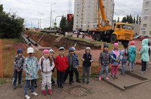 Воспитанники Балкыш совершили увлекательное путешествие на место работы строительной компании ООО БМ по замене труб теплотрассы на улиөе Ахметшина. Балкышата своими глазами увидели слои грунта в разрезе и познакомились с особенностями работы специалистов.