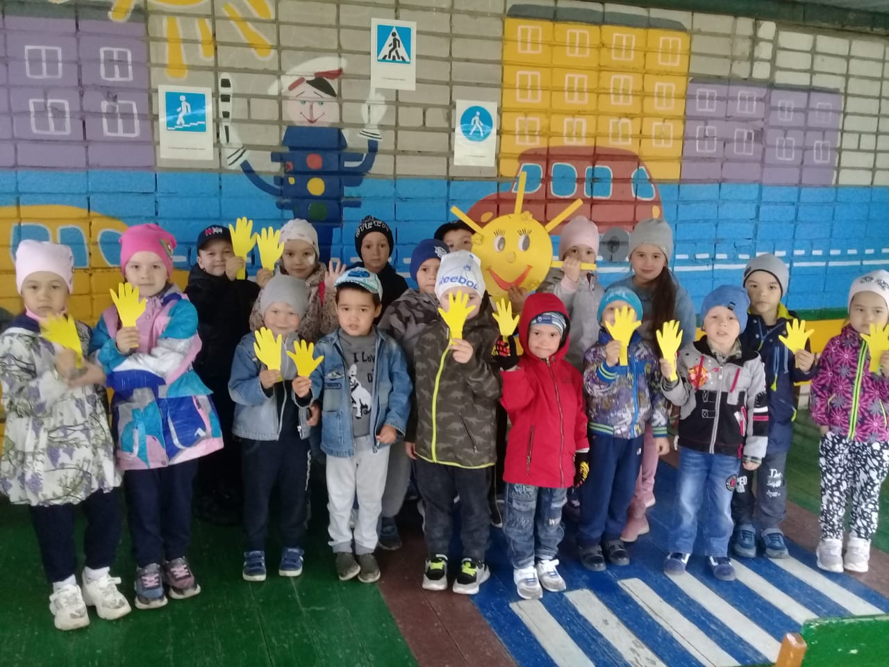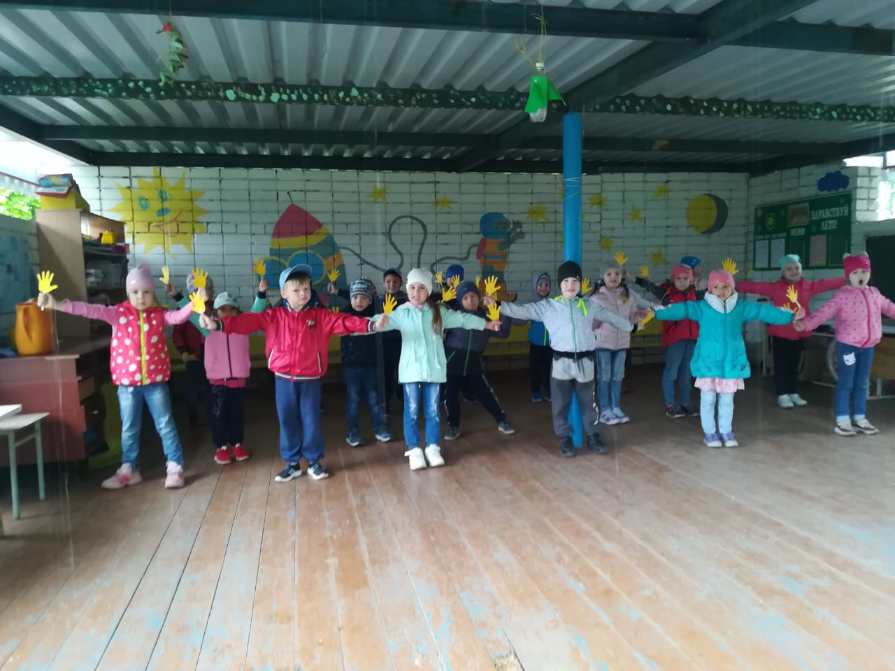 Дети из ладошек солнышко сложили,
