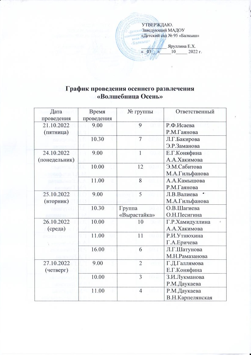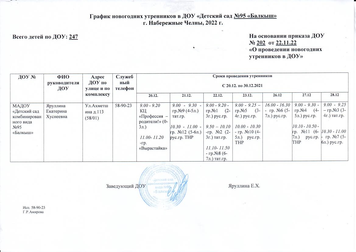 который будет проходить по Графику утренников