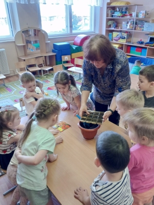 Группы №1, №8 и №9 принимают участие в выращивании рассады. Дети совместно со взрослыми сажают семена, удобряют и пикируют рассаду, поливают первые ростки. В группах организованны огород на окне, в котором ребята выращивают не только рассаду для огорода, но и цветы для будущих цветников.