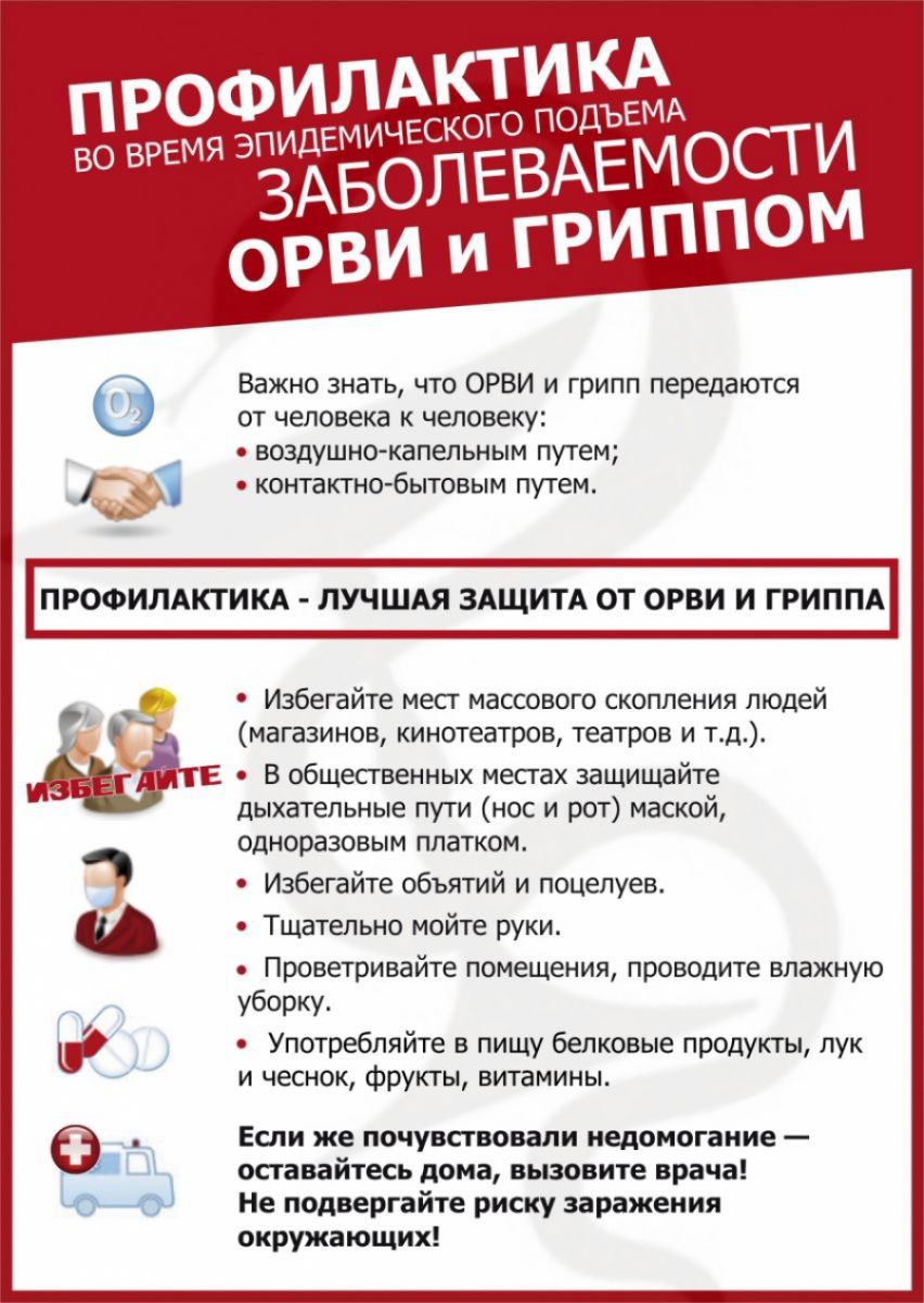Опубликовано: 21.01.2022Министерство образования и науки Республики Татарстан в соответствии с письмом Управления Роспотребнадзора по Республике Татарстан информирует, что ежегодно в зимний период отмечается подъем заболеваемости гриппом и острыми вирусными респираторными инфекциями (далее-ОРВИ), которые составляют 95% всех инфекционных заболеваний.