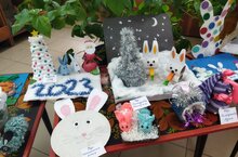 В холле нашего ДОУ была организована Новогодняя выставка «Дед Мороз и его друзья – зайки – попрыгайки!».