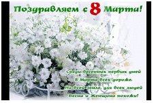 Милые женщины! Поздравляем Вас с праздником весны и молодости. Желаем Вам быть всегда юными, красивыми, нежными и чуткими. И не только в этот праздничный день.