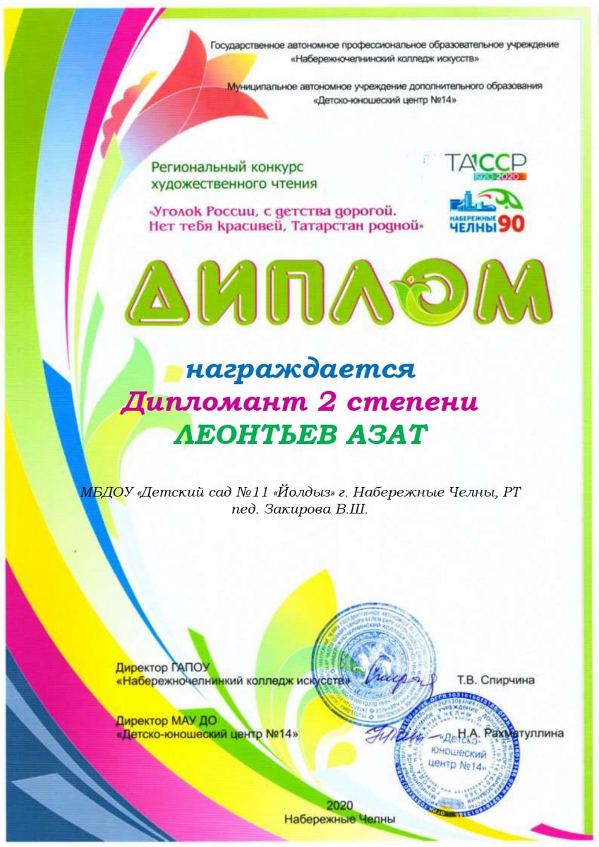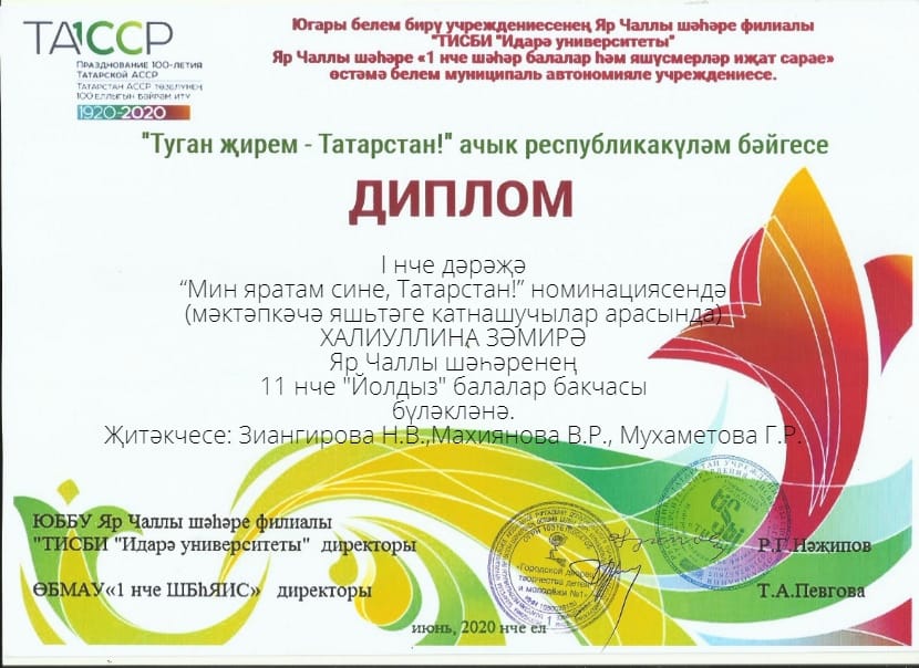 "Туган жирем - Татарстан" Диплом 1 место(2020)