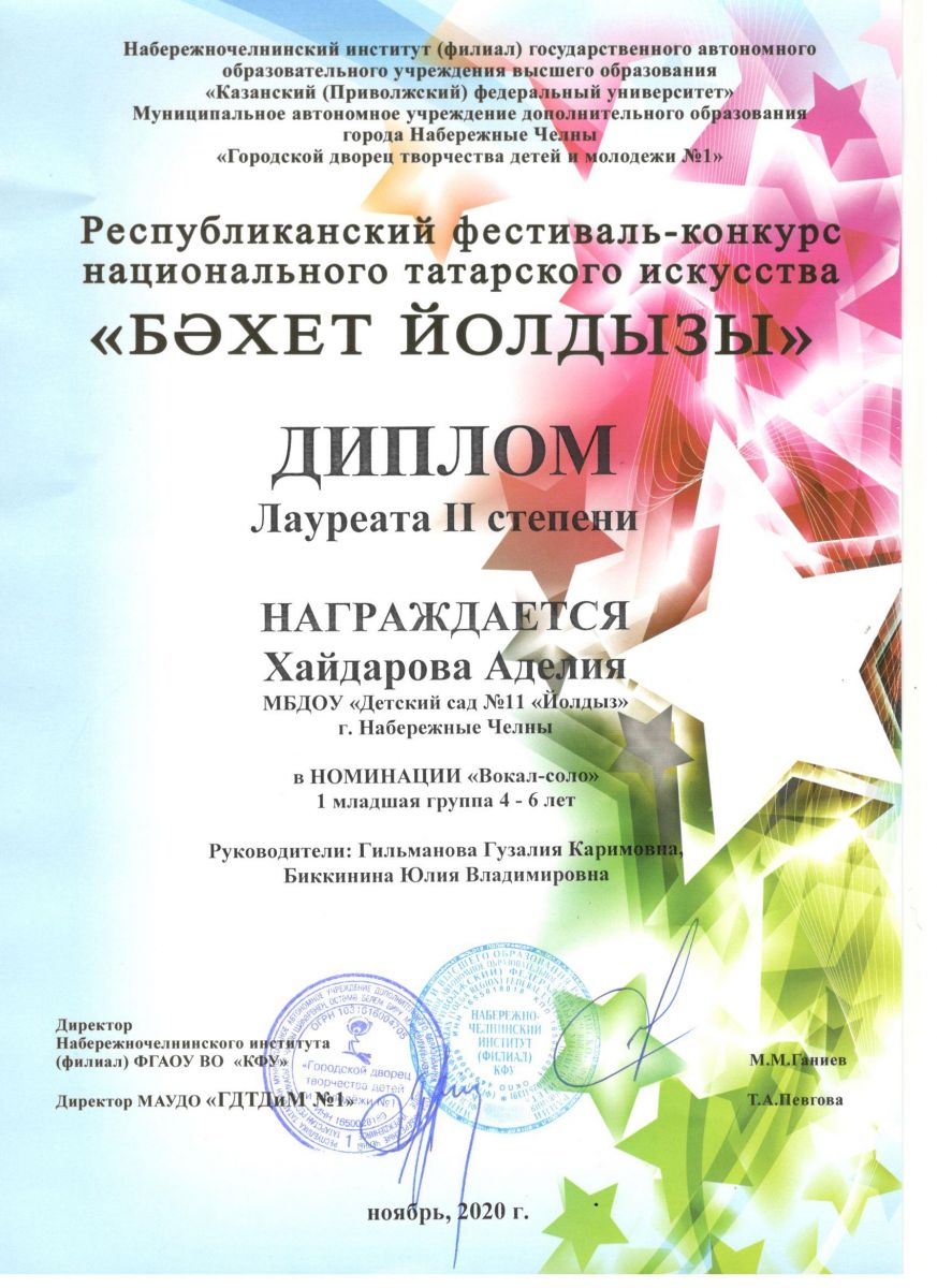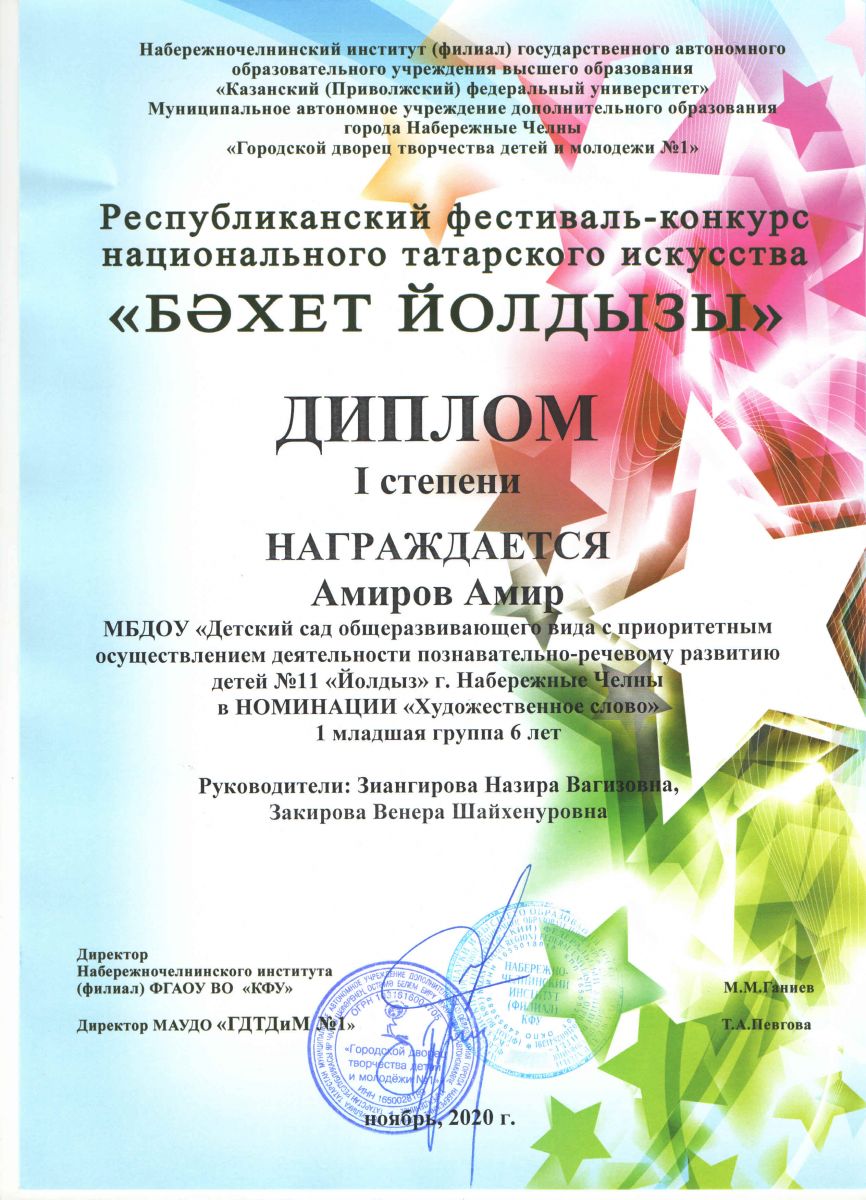 "Бэхет йолдызы" Диплом 1 степени (2020)